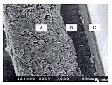 A/B/C分别为钴酸锂活物质、PTC涂层、铝箔。此种结构的好处在于,PTC材料可以提高锂离子电池的安全性,同时可以防止锂离子嵌入PTC材料中破坏导电剂的结构,从而改善电池的倍率性能和循环寿命。(2)将PTC材料混入电极材料中日本Makiko Kise等人将PTC材料引入电池内部,使PTC材料与电极材料混合到一起,做成混合电极。其中PTC材料是由高密度聚乙稀(HDPE)和炭黑混合而成。其保护作用机理是:正常的条件下,材料中的作为导电剂参与电子传输;在滥用条件下,电池温度升高,超过PTC材料材料中的HDPE熔点时,聚合物迅速扩散,抑制导电剂导电通道的传输。