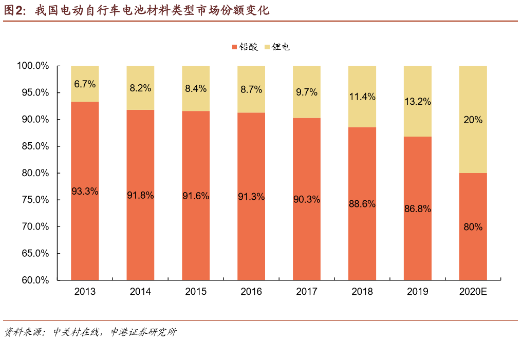 随着锂电池成本不断降低,锂电池逐渐取代铅酸电池,成为电动自行车市场主流技术路线的趋势不可避免。