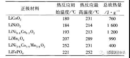 表 1 常见正极材料的热稳定性