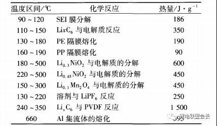 表2 锂离子电池体系中主要的热行为