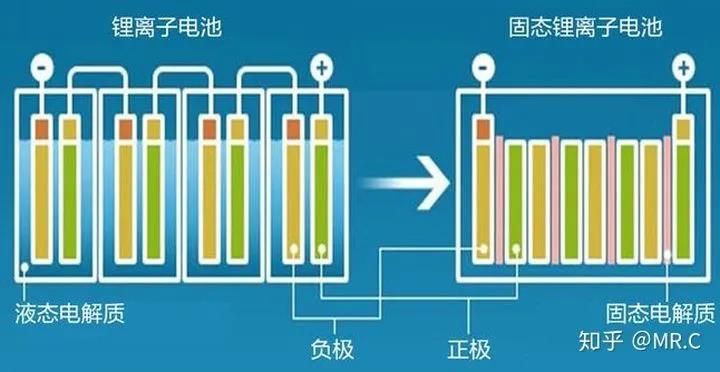 在提高电池能量密度的同时,电池的安全性是不得不考虑的问题。从根本上消除锂离子电池的安全隐患仍在于电池材料安全性的提高。但对于正极材料,这两方面是矛盾的。比如,前面已经讲到,提高镍含量能够提高能量密度,但是镍含量提高意味着安全性降低.有什么办法从别的方面加强电池的安全性,从而更放心的提升能量密度呢?这时候就要从电解质角度考虑了。大量研究表明,液态电解质参与了电池热失控过程的大部分反应,并极大降低了电池的初始反应温度,也就是让热失控的门槛变得更低。所以提髙电解质安全性是实现电池安全的最有效方法之一[3]。液态电解质的物理特性决定了其始终无法避免泄露,同时也不利于缩小电池体积从而提髙能量密度,因此为了提高能量密度和安全性,电解质的固态化就成了趋勢。多宝电竞把电极和电解质均为固态的电池称为固态电池。固态电池电芯内部不含液体不仅安全性更高,还可实现先串并联后组装,减少了封装壳体用料,PACK设计大幅简化,这也提高了电池成组后的能量密度。