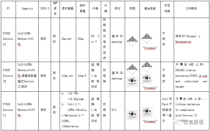 2-Section II标准:功率<=2.7Wh,每箱重量<=2.5kg(电芯或电池组);功率2.7<